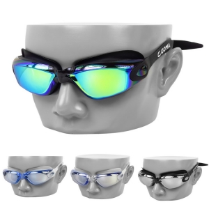 GOMA 800度 SILICONE 反光防霧近視泳鏡, 黑+銀鏡